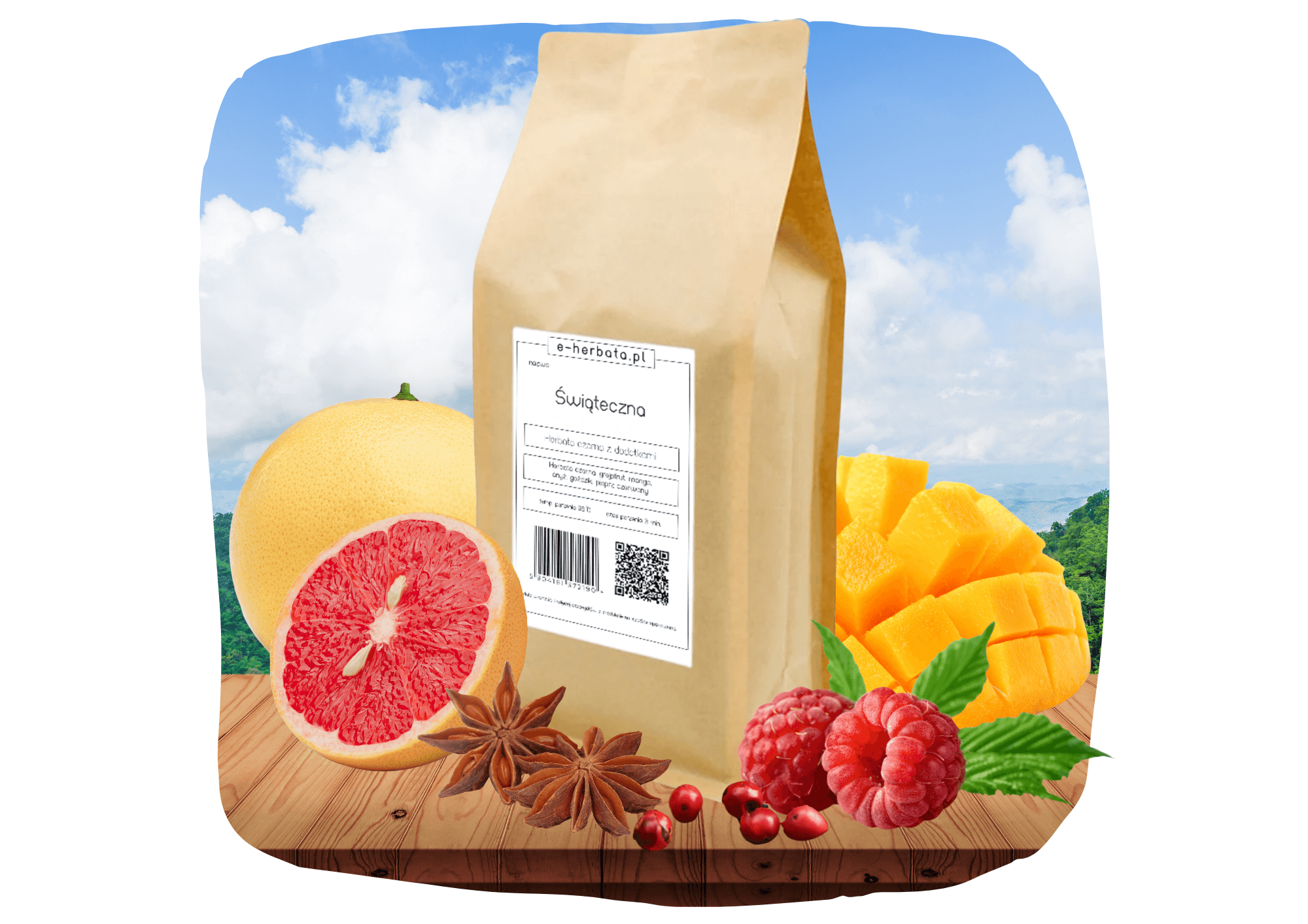 Wyjątkowa, pełna kontrastów kompozycja dla miłośników wyrazistych smaków. Bazę stanowi klasyczna czarna herbata o głębokim aromacie, wzbogacona o słodko-kwaśne nuty malin i grejpfruta oraz egzotyczną soczystość mango. Anyż nadaje naparowi lekko korzenny, orientalny charakter, a czerwony pieprz delikatnie podkreśla całość subtelną ostrością.
